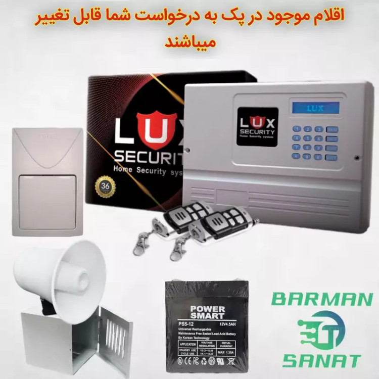 بهترین انتخاب، بهترین خرید پک کامل دزدگیر اماکن سیم کارتی برند لوکس سکیوریتی اقلام شامل در پک: یک عدد پنل دزدگیر لوکس کیپد دار همراه دو عدد ریموت، دفترچه راهنما، کارت گارانتی و... یک عدد سنسور چشمی برند فوتال (برد تا 8 متر) یک عدد باتری 4.5 آمپر درجه یک یک عدد بلندگو 30 وات یک عدد قاب یا کاور بلندگو فلزی درب دار توضیحات اجمالی دزدگیر سیم کارتی لوکس ( lux security) |دزدگیر لوکس سکوریتی پشتیبانی از ارسال پیامک و تماس صوتی با شماره های تعریف شده در هنگام نصب دارای نصب ساده (بدون نیاز به دانش تخصصی) پشتیبانی از تعیین مدیر و زیر گروه پشتیبانی از چشمی وسنسورهای بیسیم 433 هرتز قابلیت استفاده از تمامی سنسورها مانند دود گاز حرکتی گرمایی پشتیبانی از اضافه کردن ریموت تا ده عدد قابلیت استفاده از باتری دارای نرم افزار فارسی با رابط کاربری بسیار ساده ارسال اعلان آلارم از طریق تماس صوتی و پیامک در صورت قطع و وصل شدن برق بلندگو ، سنسورها، بیم ها و… دارای 24 ماه گارانتی