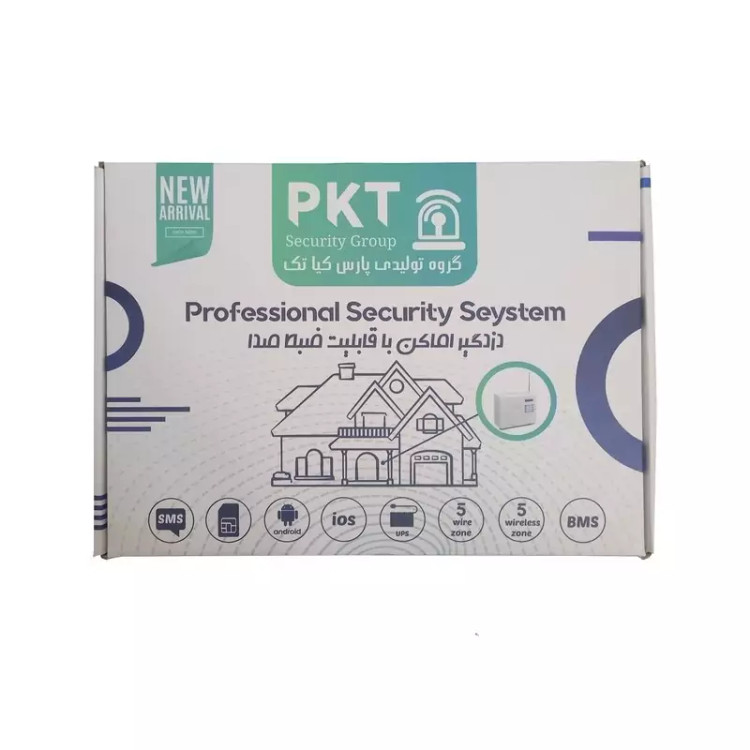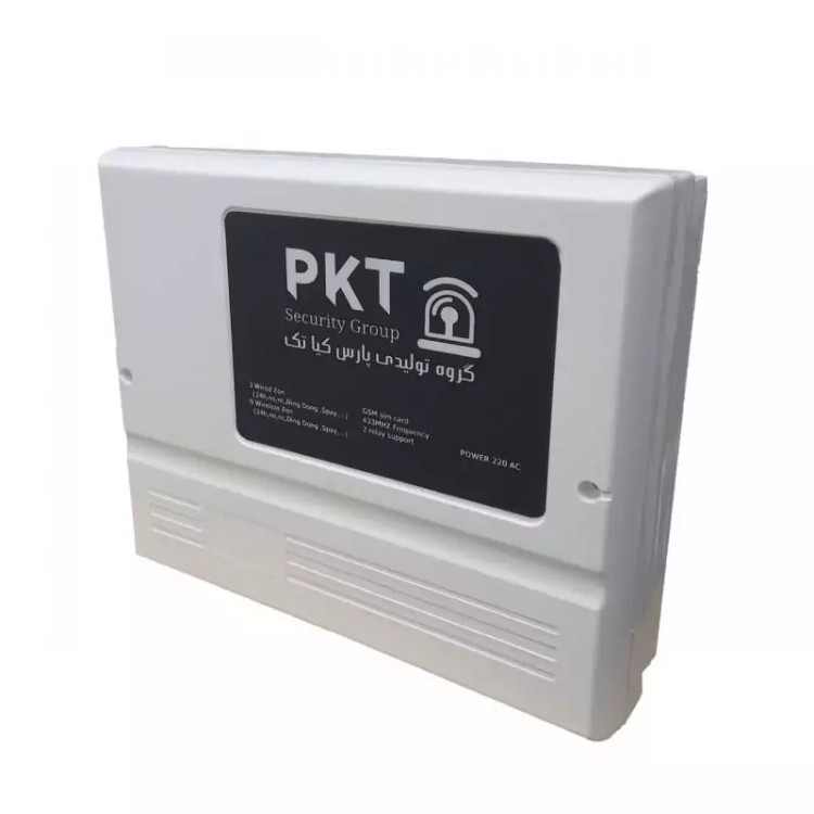 اولین دزدگیر بدون صفحه کلید و نمایش در ایران از سری محصولات اقتصادی برند PKT می باشد و دارای آنتن تقویت کننده می باشد . مناسب جهت نصب در کلیه اماکن مسکونی و فروشگاه ها و باغ ویلا ها می باشد. اولین دزدگیر بدون صفحه کلید و نمایش در ایران پشتیبانی همزمان از خط تلفن و سیم کارت دارای دو سال گارانتی و 5 سال خدمات پس از فروش دارای چهار زون سیمی و نه زون بی سیم دارای دیپ سوئیچ برای اتصال کوتاه زونها دارای LED چشمک زن برای تشخیص سیمکارت پشتیبانی از تمام اپراتورها کنترل کردن دستگاه به چهار روش تماس ، پیامک ، نرمافزار و ریموت تنظیم چهار سطح امنیتی A B C D برای مخاطبین تعریف پنج حالت مختلف برای هر زون قابلیت حذف ریموت از طریق پیامک ونرمافزار قابلیت تنظیم زبان فارسی و انگلیسی بررسی قدرت سیگنال دهی دستگاه قابلیت شنود صدای محیط قابلیت تغییر مدت زمان آژیر پشتیبانی از فرکانس 433 داری دو عدد رله جهت کنترل وسایل برقی