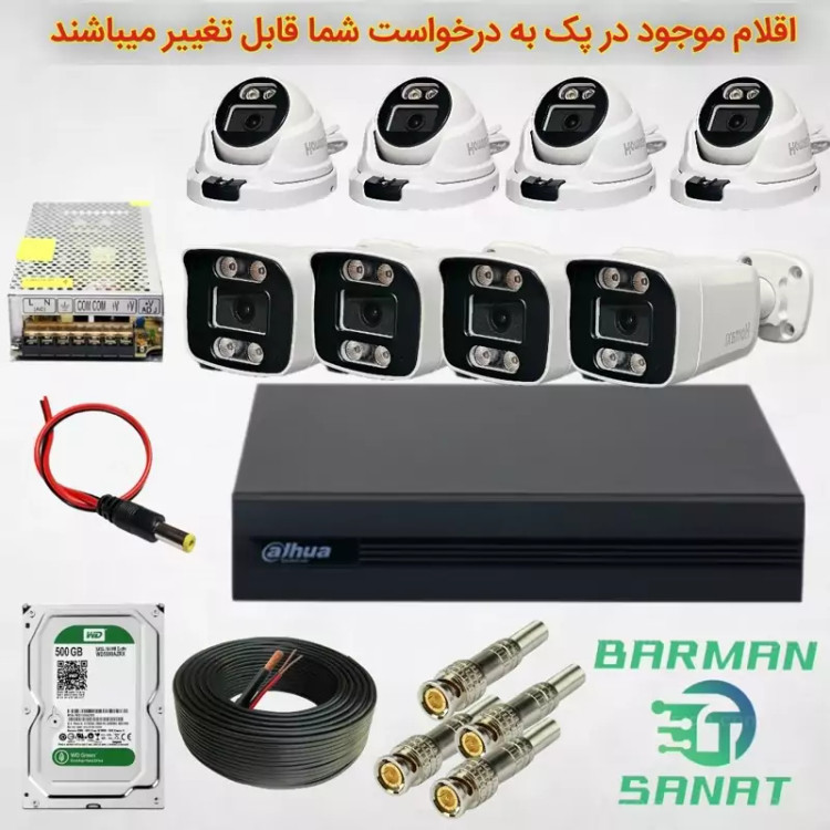 8 عدد دوربین با لنز 5 مگاپیکسل AHD با رزولویشن 2 مگاپیکسل فلزی و دید در شب رنگی
